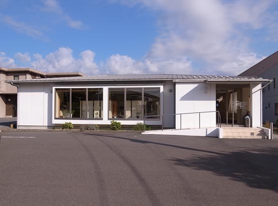 都会的なスマートな印象を目指して、水平線を重視したデザインとしました。 シンプルな形状ですが、外壁は左官材の壁にステンレスバーで目地をつくり、細部にもこだわった上質なものに見せています。 気軽の入れるよう、外部とつながった開放的な空間となるよう、大きな開口としています。処置室は家具で空間を区切ってします。出窓空間。植栽帯が緩やかな緩衝帯と役立つように設計しました。 自社設計