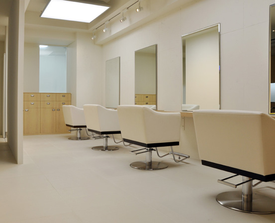 独立する若いスタイリストさんの始めての店舗です。機能的でありながら、柔らかで上質感のあるインテリアとなるように、構成要素のバランスを特に配慮しました。