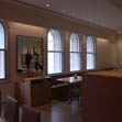 重要文化財に指定された歴史ある建物の特徴ともなっている魅力的な形状の大きな窓と高い階高を活かしています。昭和初期に建てられた建物の持つハイカラなイメージを、天ぷらの洋のイメージになぞられました和の造作の作り込ではなく、すっきりとして気持ちの良い空間、シンプルではあるけれど上質な雰囲気を感じていただけるよう、家具をはじめとする各部詳細に特に注意を払いました。