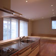 道路に面する窓は高い位置に設定し、大きな窓で外光を十分取り込みつつ、プライバシーを確保しました。