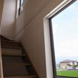 LDK内に階段を設置し、広がり感と3方向の窓を与えた。都会的でシンプルな内装としつつも、床には無垢材のフローリングを使うなど質感のあるものを選択した。
