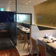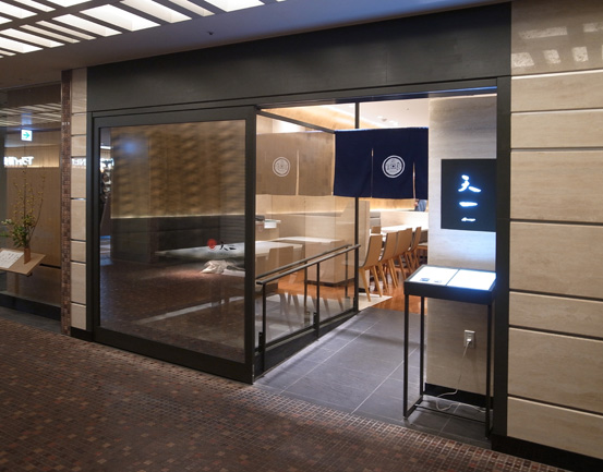 半透過のファサードで中の人の動きを見せて、客を誘引します。内装には本物の金箔と漆を使い